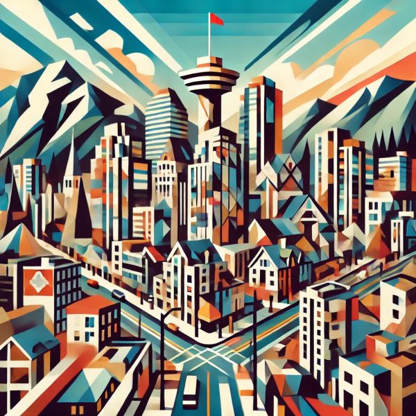Cubist Interpretation of Vancouver's Dynamic Skyline and Mountains